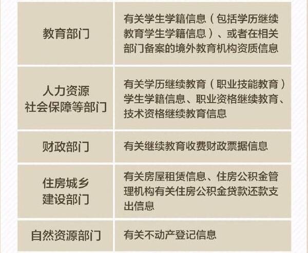 例如,房产部门不动产登记信息,加上从住房公积金中心和金融监管部门提供的还款支出信息,才能作为住房贷款利息专项附加扣除的资料。继续教育学籍证明,还需加上收费财政票据才可以作为继续教育专项附加扣除的资料。