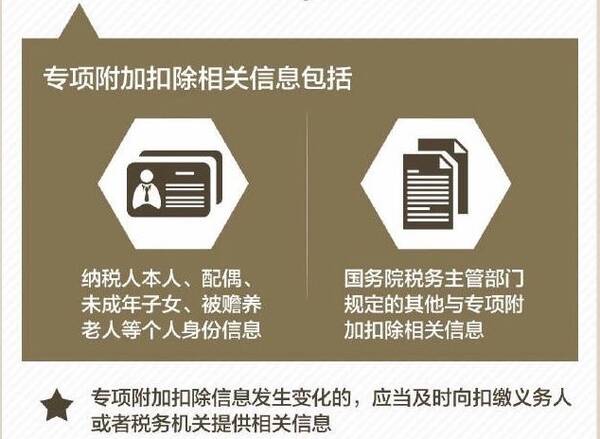享受扣除项需要提交相关信息,包括纳税人本人、配偶、未成年子女、被赡养老人等个人身份信息。提交的渠道有两个:既可以提交给扣缴义务人,也可以直接提交给税务机关,充分考虑到了方便纳税人和保护隐私问题。