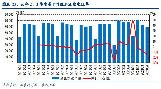 分季度来看,Q2水泥行业更是出现了“旺季不旺”的尴尬局面。彼时,受疫情多点散发、房地产工程项目资金不足、道路运输不畅等多重不利因素影响,水泥产量继续向下寻底,4、5月单月水泥产量同比增速分别为-18.9%、-17%,为历史同期最低水平。