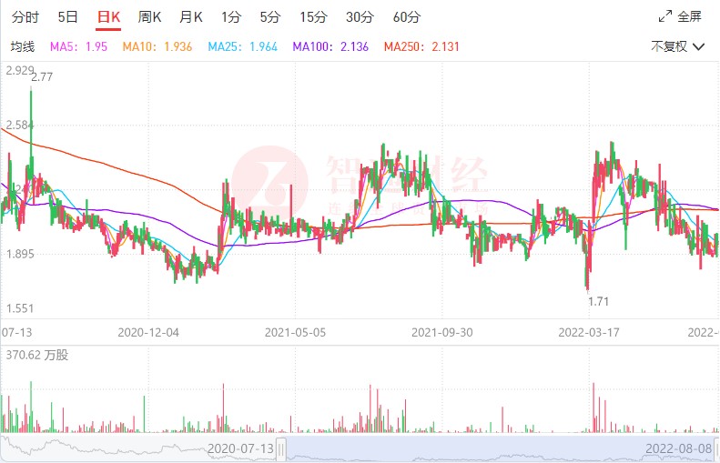 智通财经注意到,自今年4月开始,山水水泥的月K线已连续四个月收阴线。另外,从换手率来看,山水水泥的交投表现清淡,近几个月的月度换手率均不足0.1%,市场热度可谓已降至“冰点”。